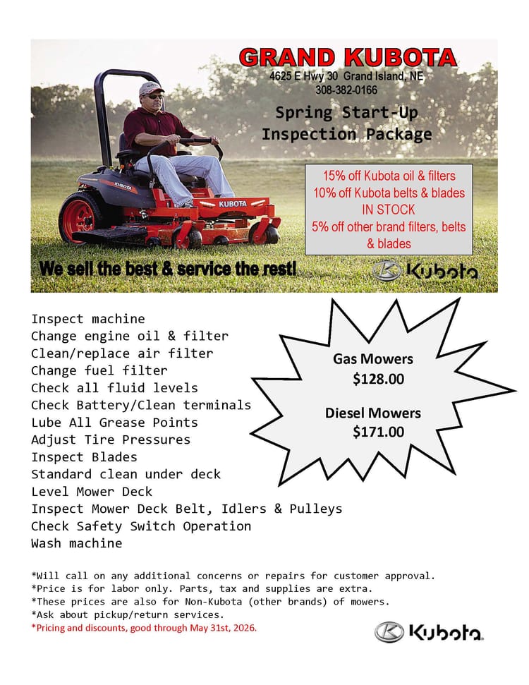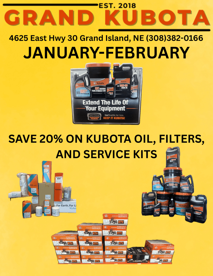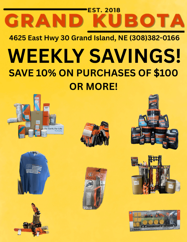If you're looking for quality equipment and exceptional services provided by trained experts, you've come to the right place. At Grand Kubota, we pride ourselves on matching each customer's unique needs with the Kubota that will serve them best. We're glad you're here, where you can check out our inventory, order parts, schedule a service appointment or simply give us a call at 308-382-0166 and let us know how we can help you.