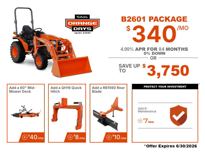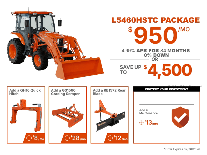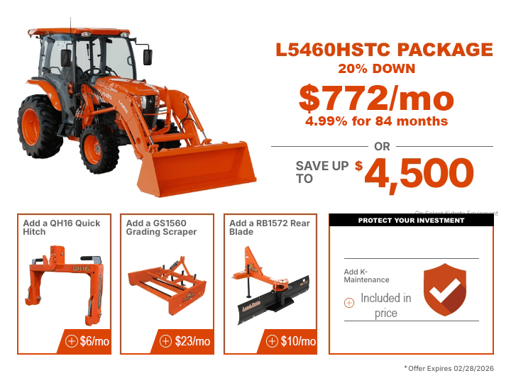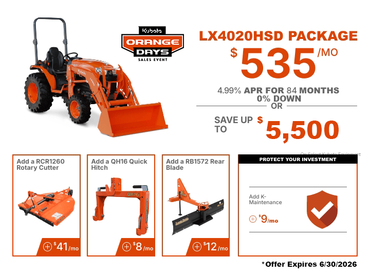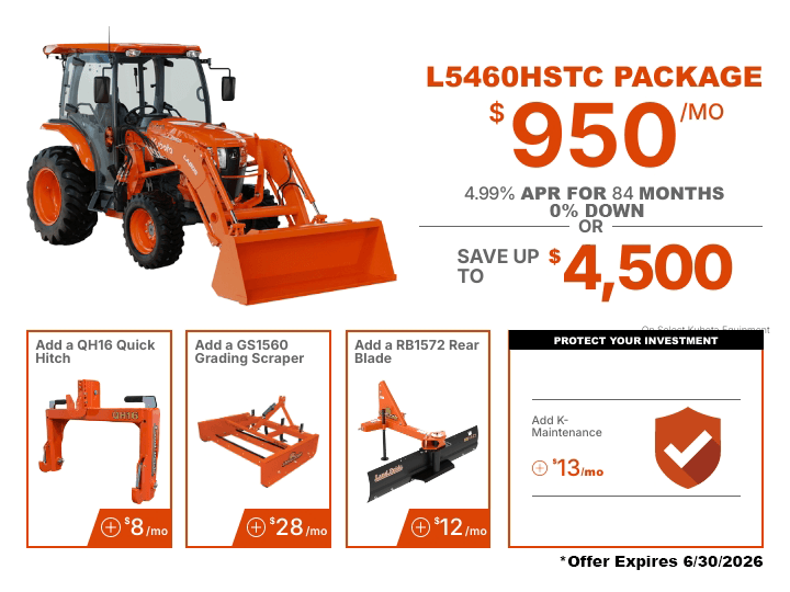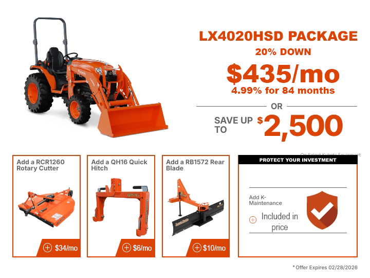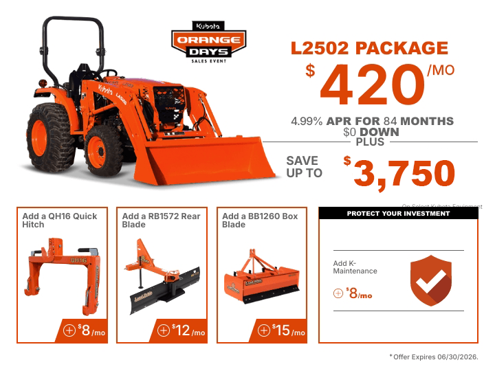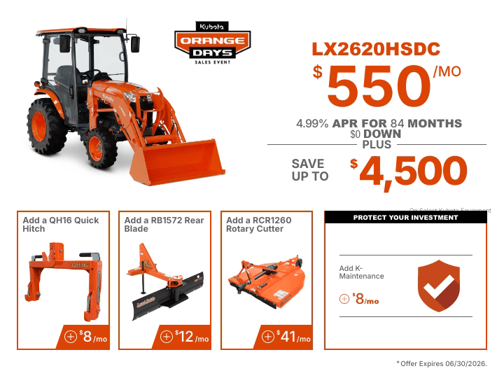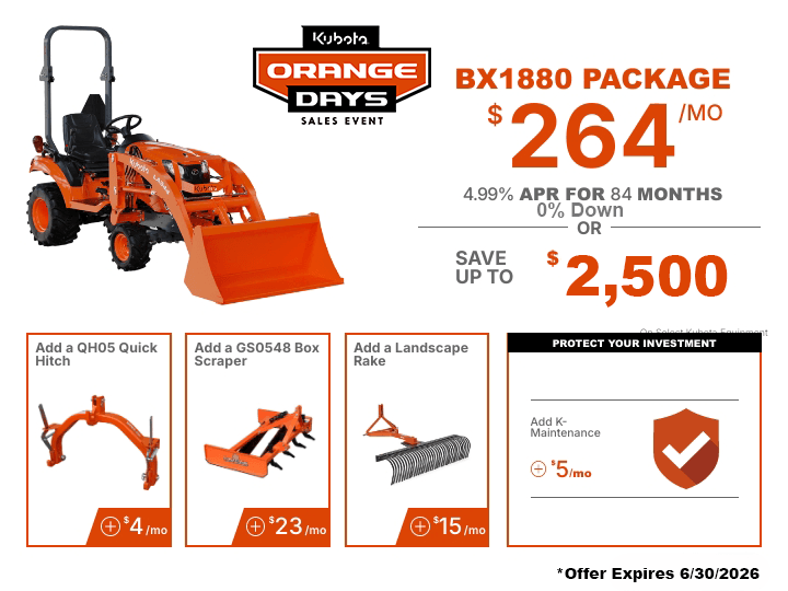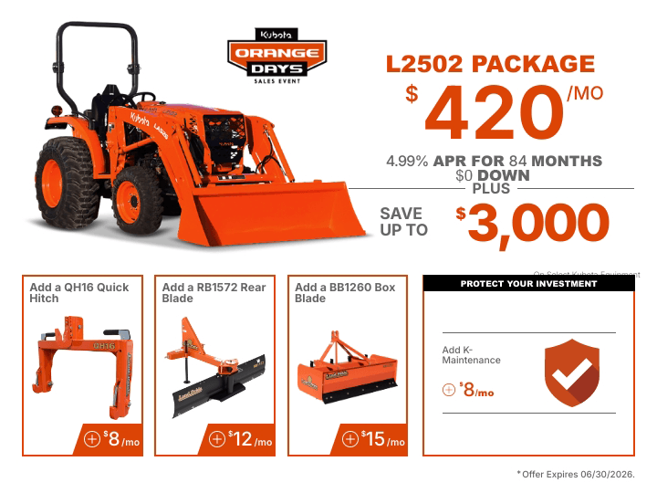 TAKE ADVANTAGE OF OUR EXCLUSIVE OFFERS ON SELECT KUBOTA PRODUCTS.