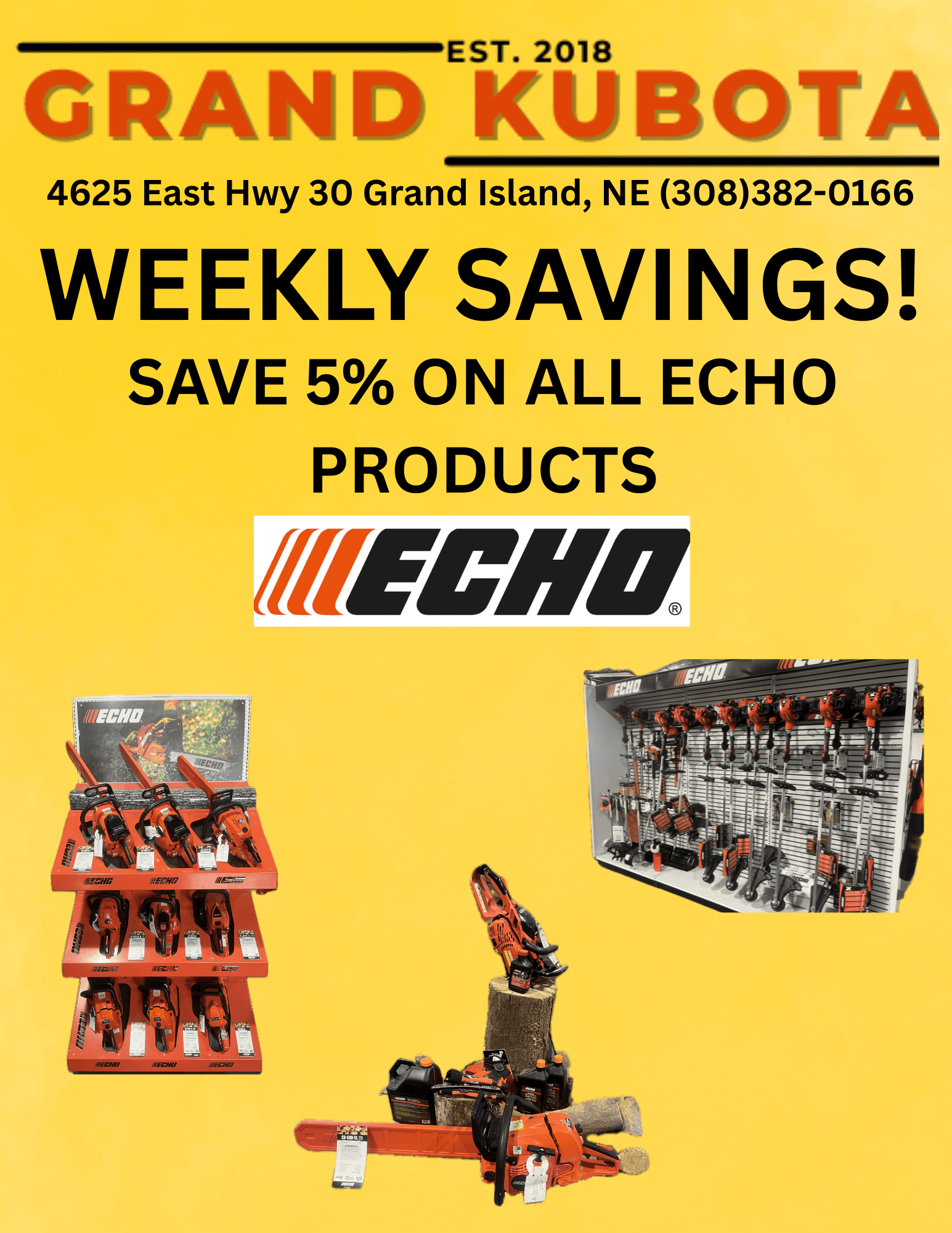 For the rest of the month, stop by and save 5% of all of the ECHO products we carry.